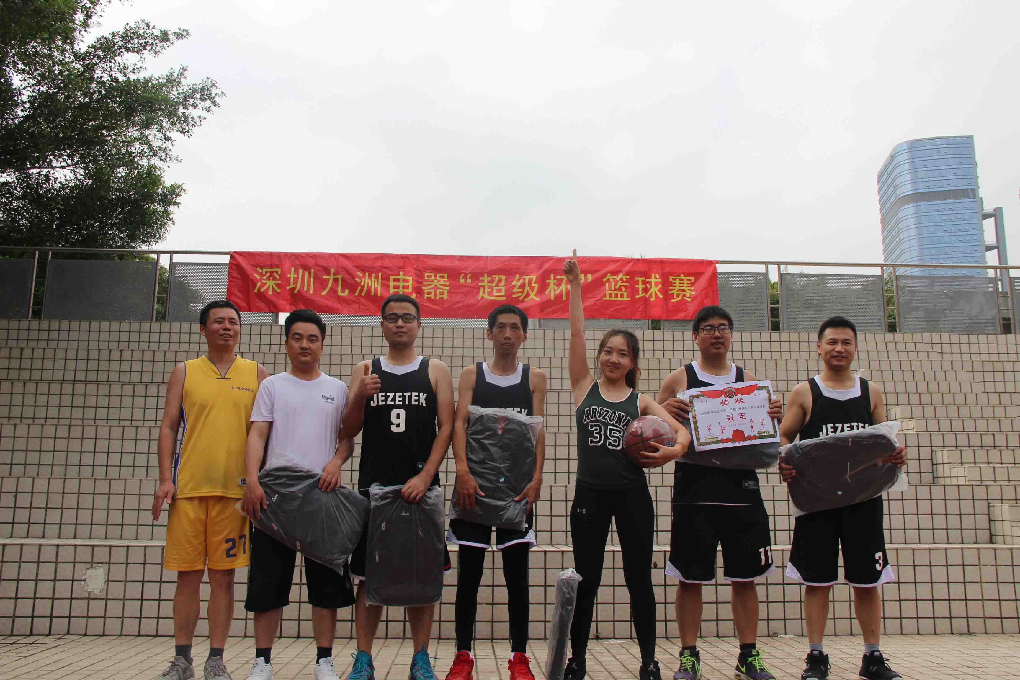 深圳市九洲電器有限公司2018年第十三屆“超級(jí)杯”三人籃球賽已于2018年11月24下午一點(diǎn)宣告圓滿結(jié)束。在這里,我代表組委會(huì),感謝各位領(lǐng)導(dǎo)的大力支持,感謝各位同事的熱情參與,也感謝現(xiàn)場(chǎng)各位工作人員的辛勤付出,正因?yàn)榇蠹业亩αχС峙浜?,才使得比賽進(jìn)行的如此順利。