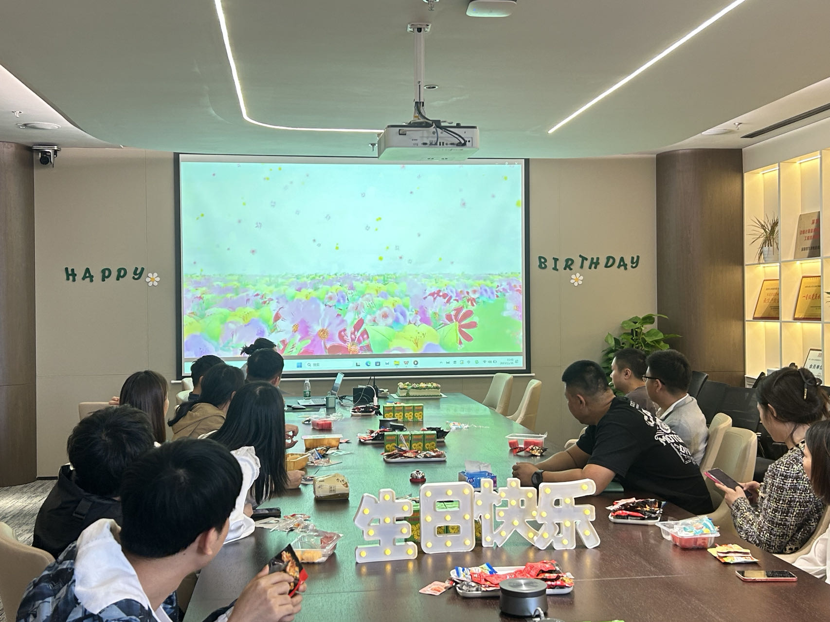 伴隨著歡快的音樂聲,大家同唱生日歌,共同許下美好心愿,留下了幸福的瞬間!